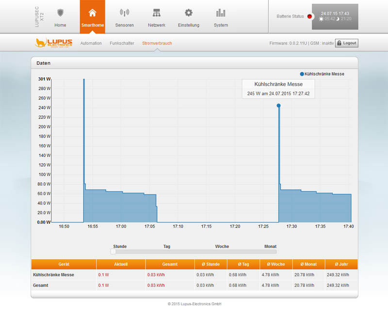 Der schlaue Schaltgehilfe macht Ihr Zuhause komfortabler, sicherer und auch sparsamer: Per Knopfdruck oder vollautomatisch unterbricht das Hutschienenrelais die Stromzufuhr und spart damit intelligent Energie und Kosten. Diese haben Sie stets im Blick, denn das Modul sendet den Verbrauch aller angeschlossenen Geräte an die Zentrale. Hier sehen Sie den aktuellen Verbrauch, sowie eine Hochrechnung der Kosten für die Woche, den Monat oder das Jahr.